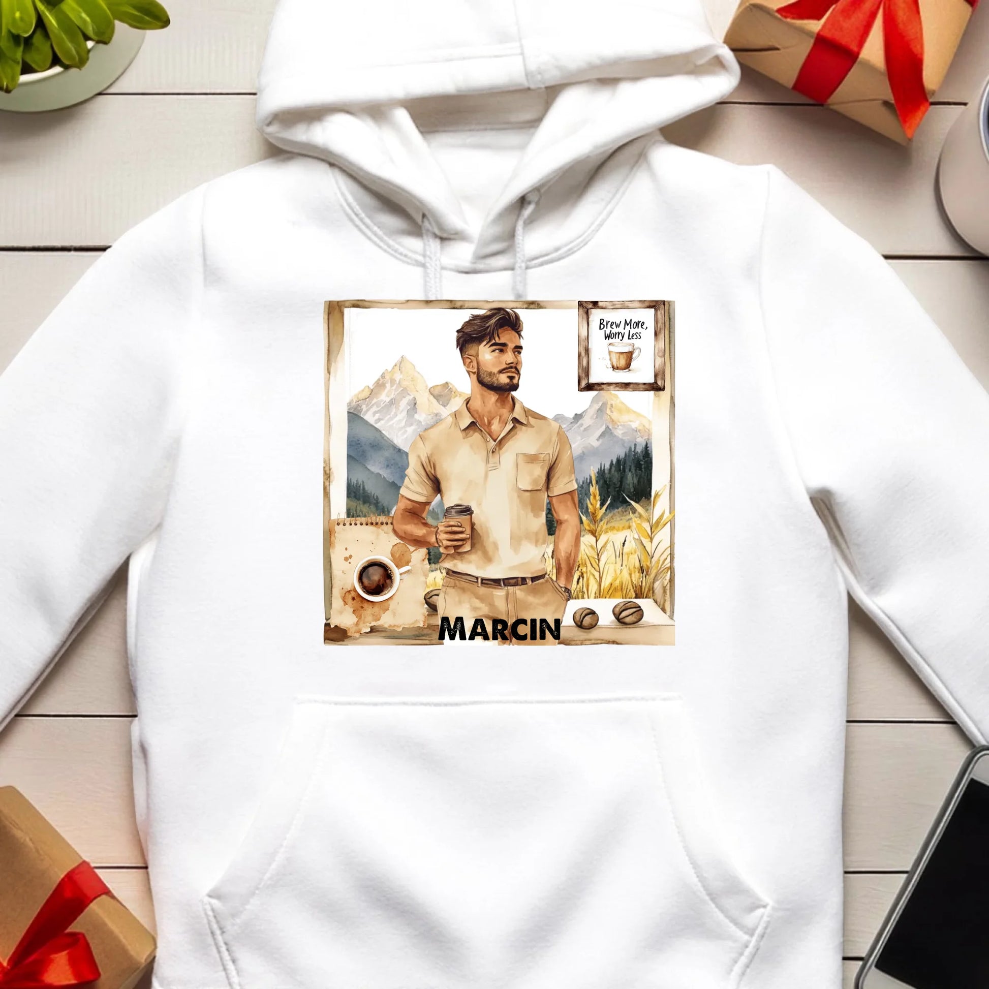 Biała bluza kangur z indywidualnym nadrukiem. W kilku prostych krokach zaprojektuj wyjątkową bluzę dla siebie lub swoich bliskich. Korzystając z prostego konfiguratora stworzysz personalizowany projekt dostosowany dokładnie do Twoich potrzeb.