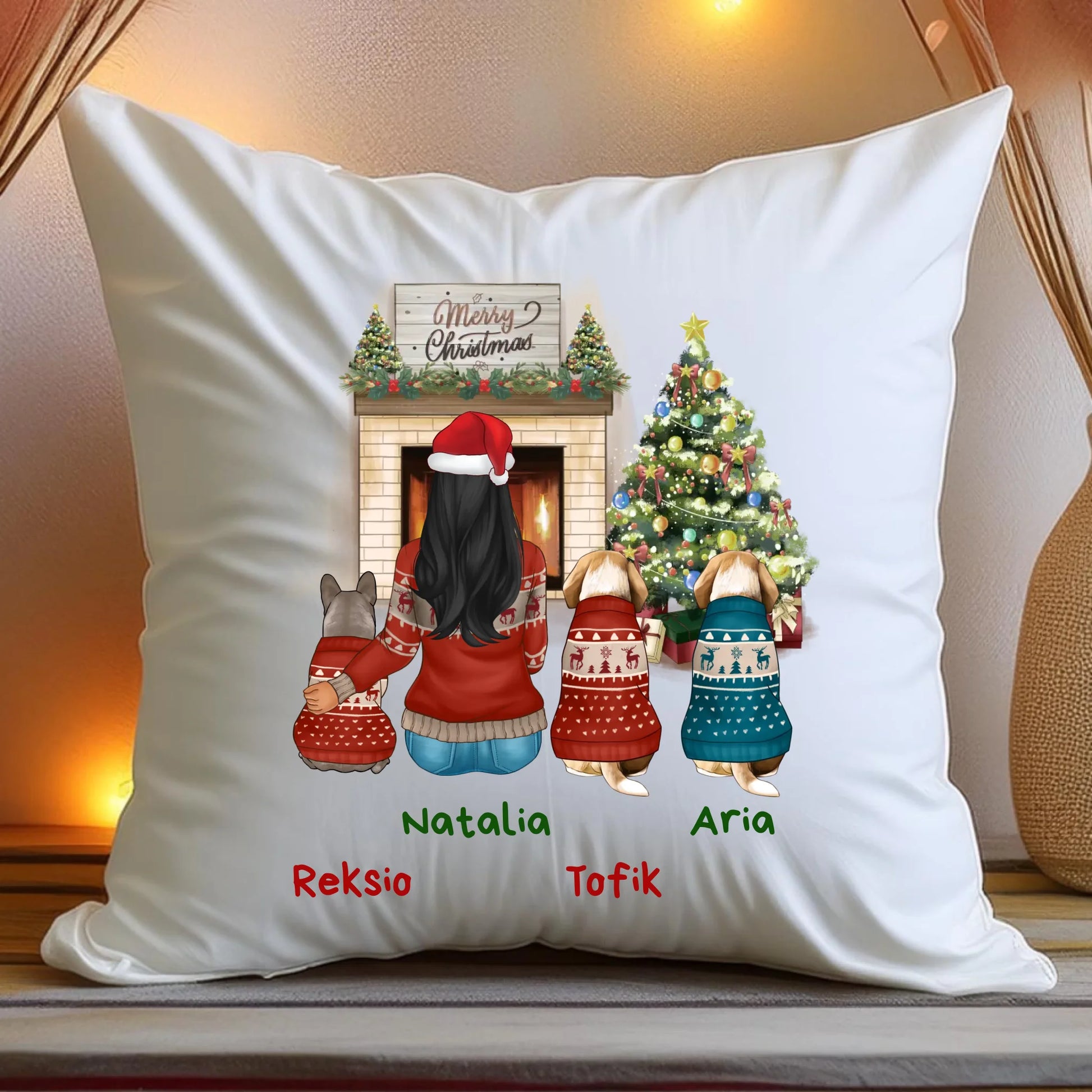 Poduszka personalizowana świąteczna dla kobiety - pieski #513